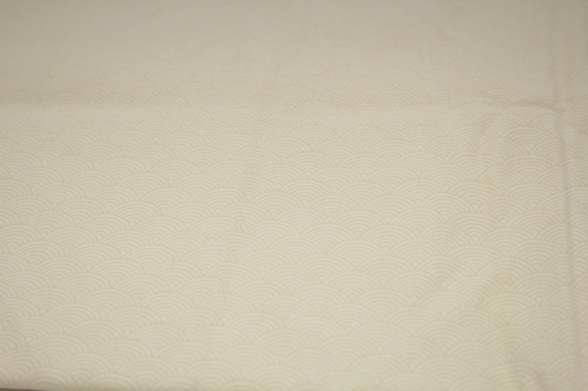 A calming cotton fabric in a subtle cream tone, featuring a delicate wave pattern that adds quiet texture and charm. Great for blending, borders, or projects that need a soft background.