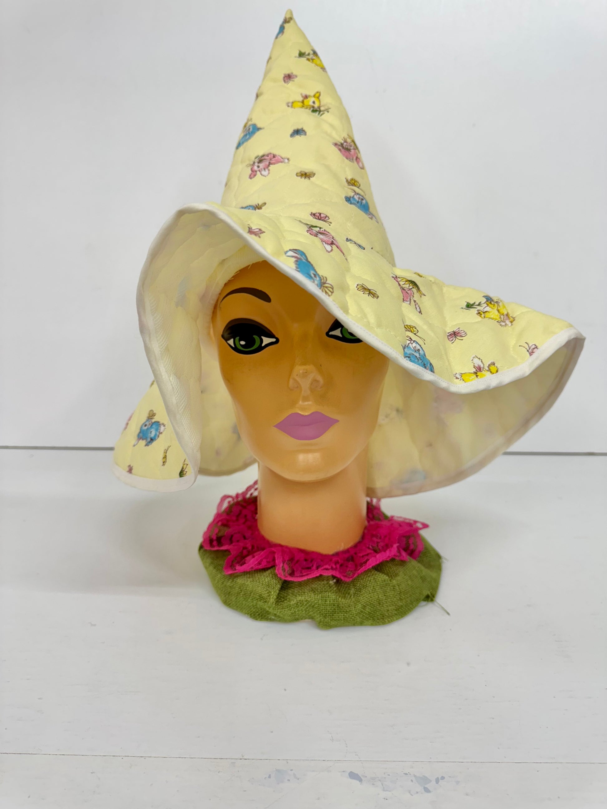 ✨ Handmade Floppy-Brim Witch Hat - Yellow Bunny