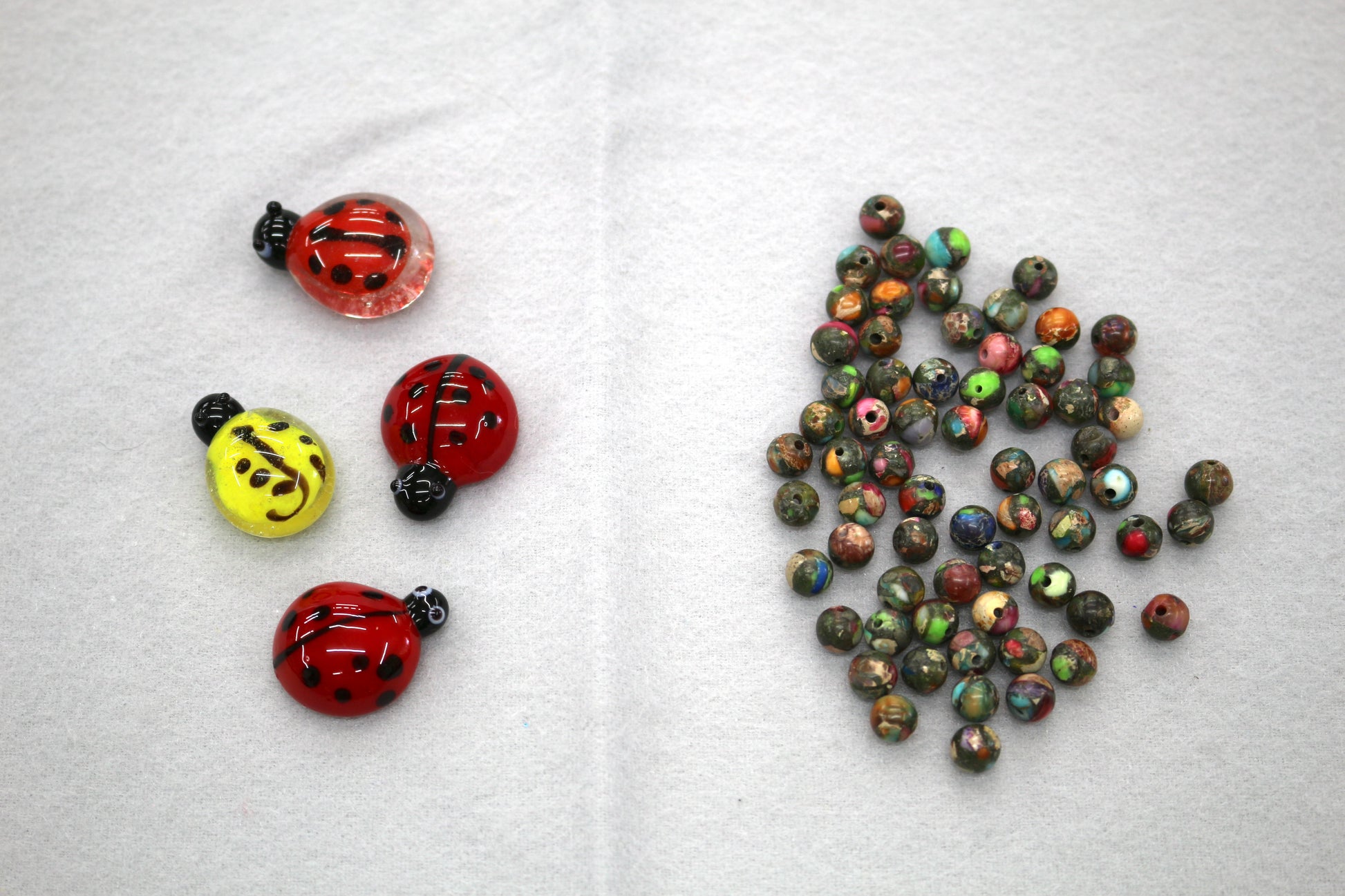 Bundle of Glass Lady Bug & Mixed Beads – Assorted Shapes & Colors