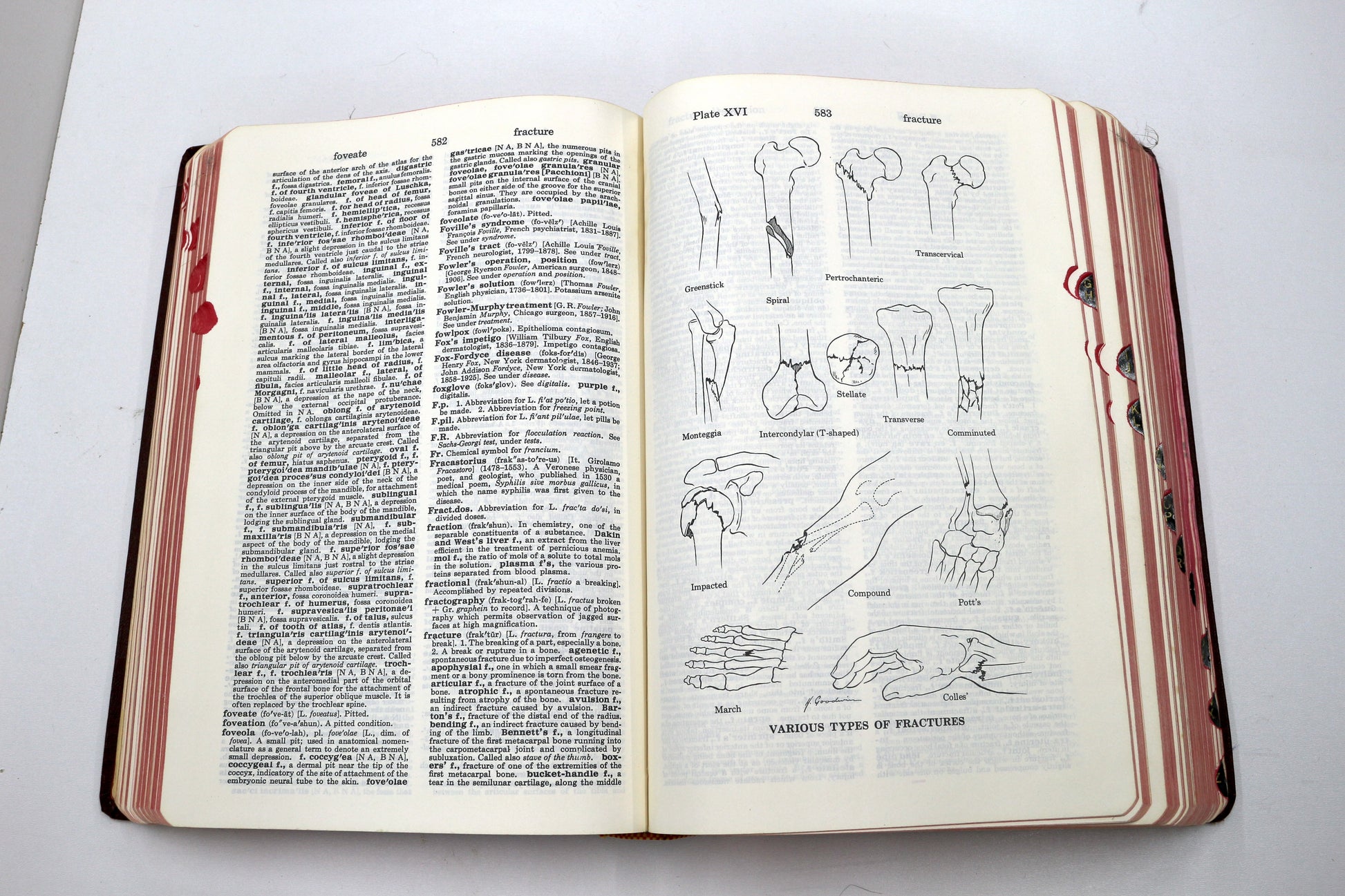 A vintage edition of Dorland’s Illustrated Medical Dictionary, this 24th Edition holds decades of medical knowledge between its maroon covers. Ideal for collectors, students of medicine, or artists who love working with aged paper and classic typography. A beautiful and useful find rescued for a new life.