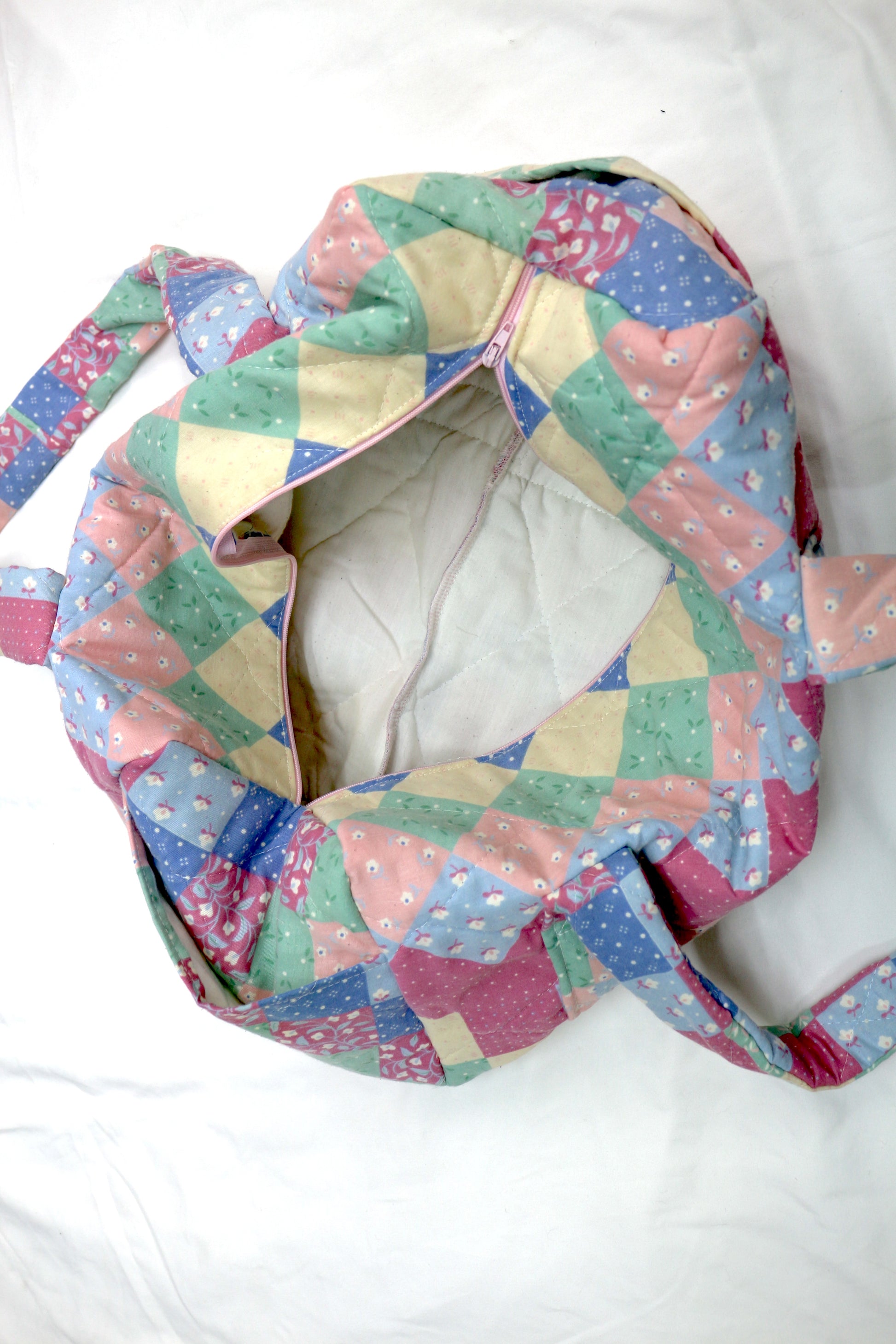 The patchwork pattern brings gentle color and charm, while the quilted construction adds structure without stiffness. It’s roomy enough for an overnight stay, a cozy weekend away, or as a go-to project bag for makers on the move.