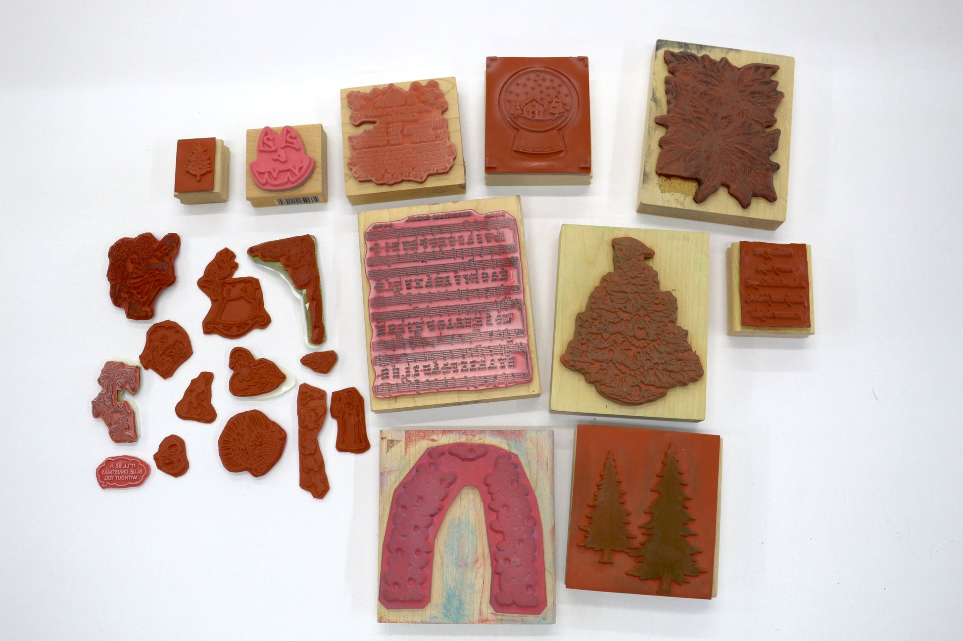 A festive, mixed-size bundle of holiday rubber stamps perfect for cardmaking, junk journaling, mixed-media art, gift tags, and seasonal crafting! This curated set includes a wonderful combination of wood-mounted stamps and unmounted red rubber pieces—everything shown in the photo is exactly what you will receive.
