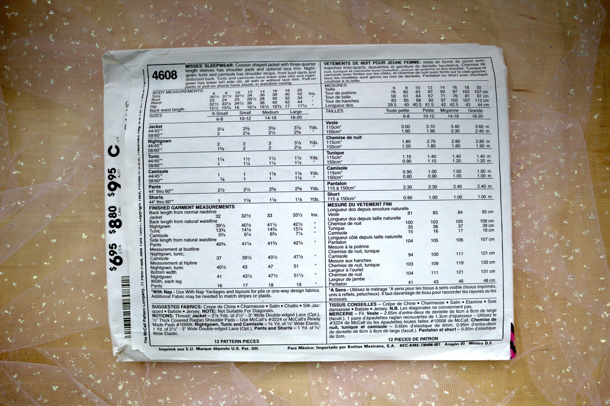 McCalls 4608 Misses' Sleepwear Sewing Pattern 6-20