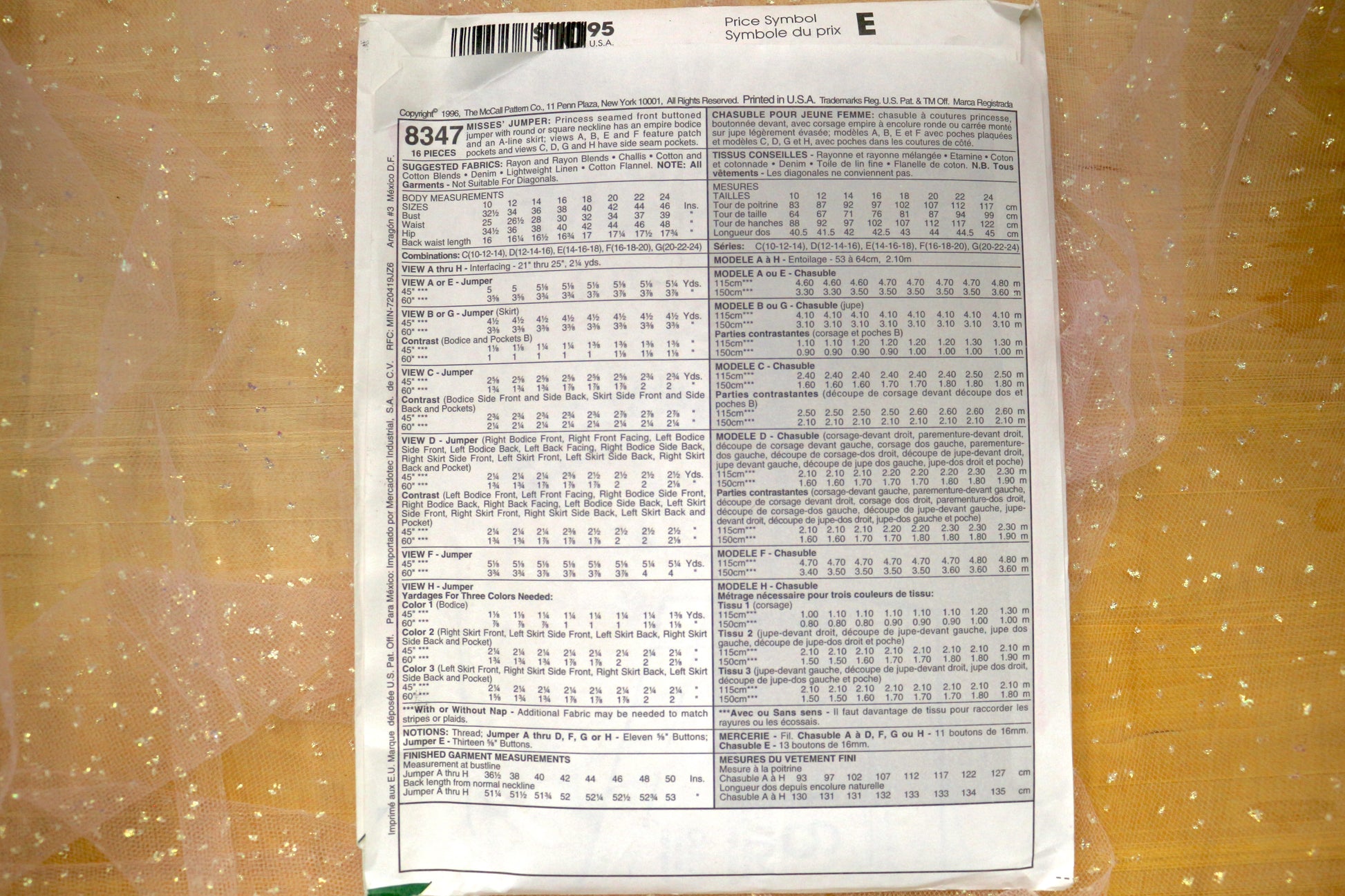 McCalls 8347 Misses' Jumper Sewing Pattern 14-18