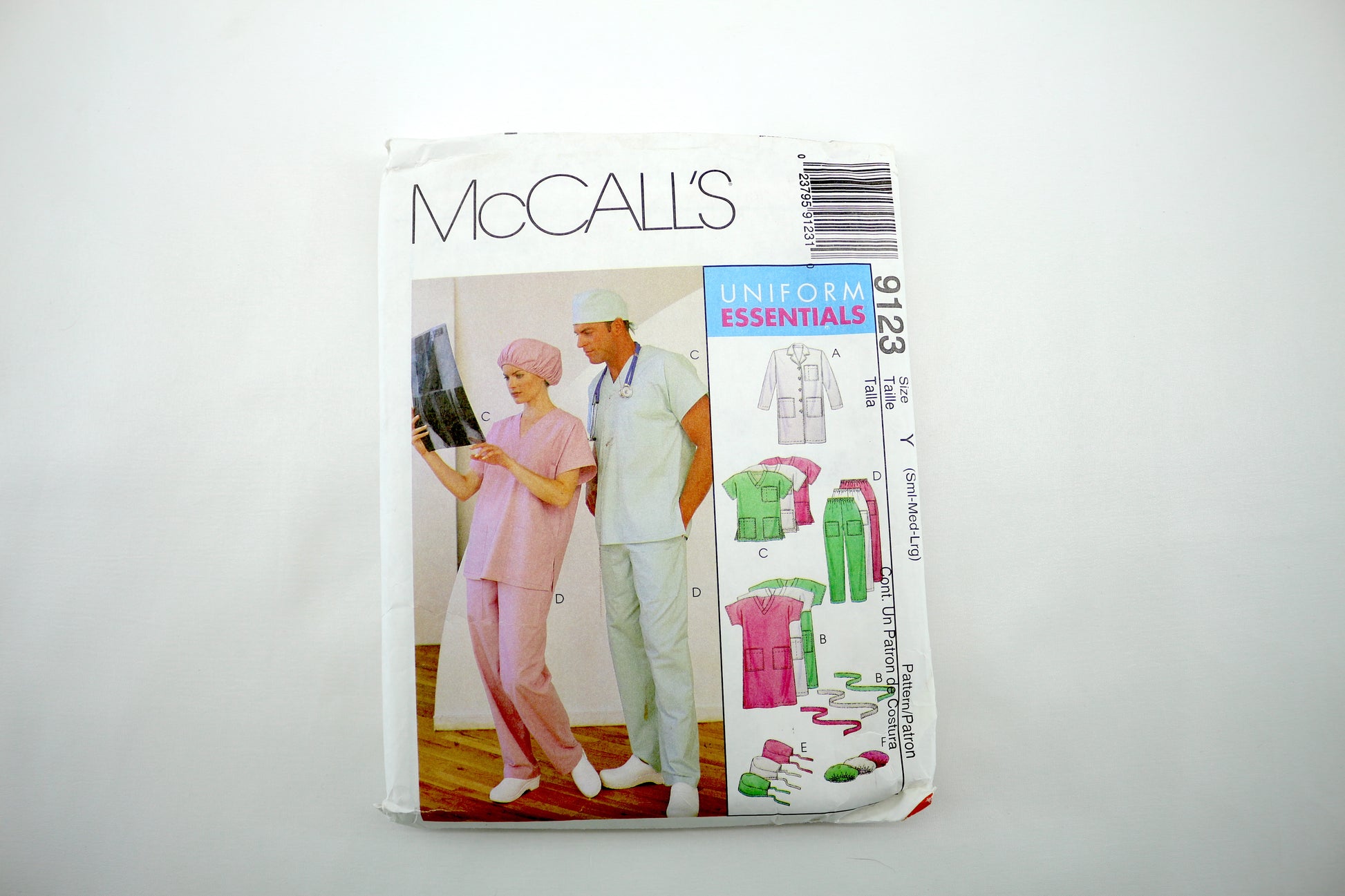 McCalls 9123 Misses' & Men's Lab Coat, Dress, Top, Pull on Pants, Hat and Tie Belt Sewing Pattern