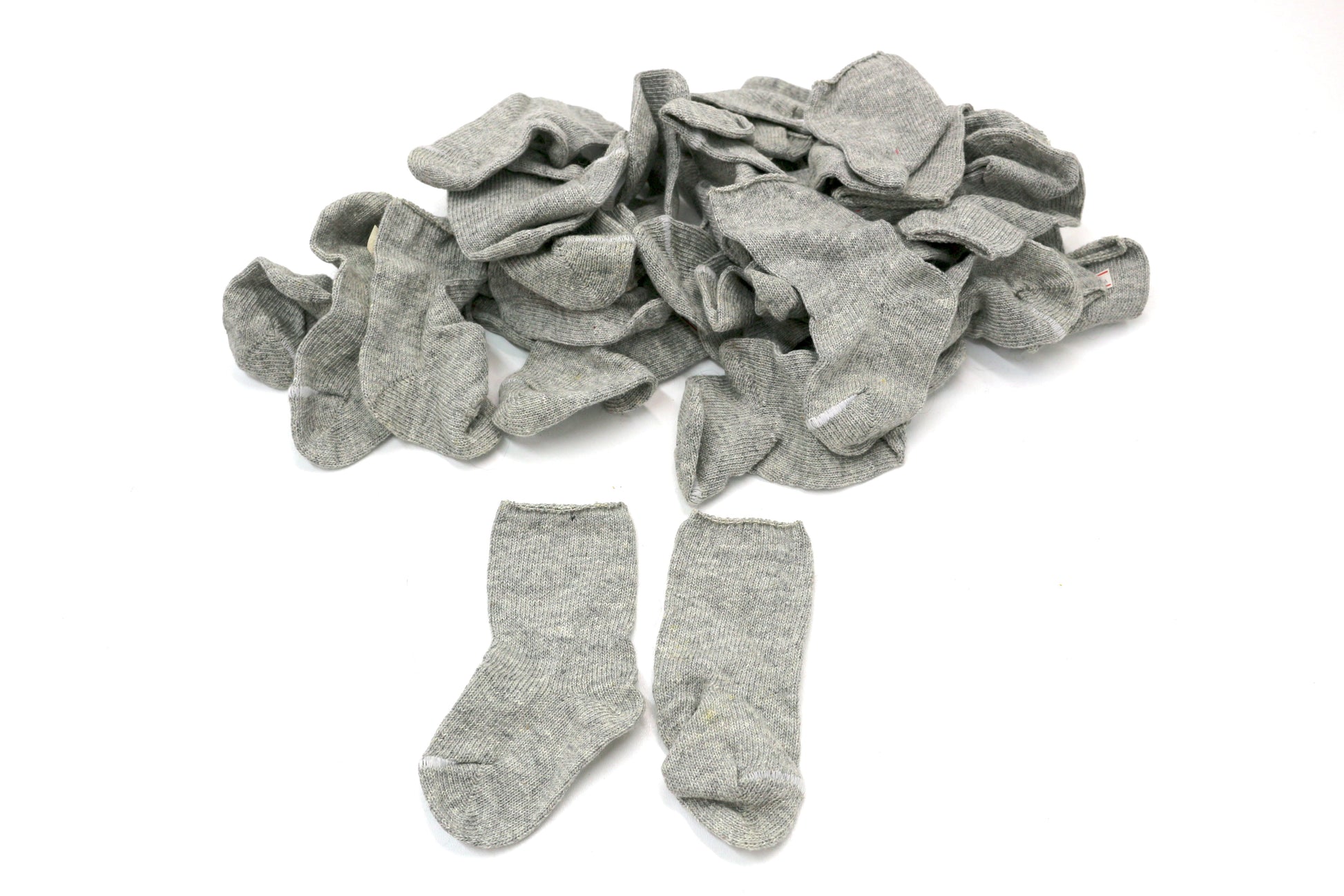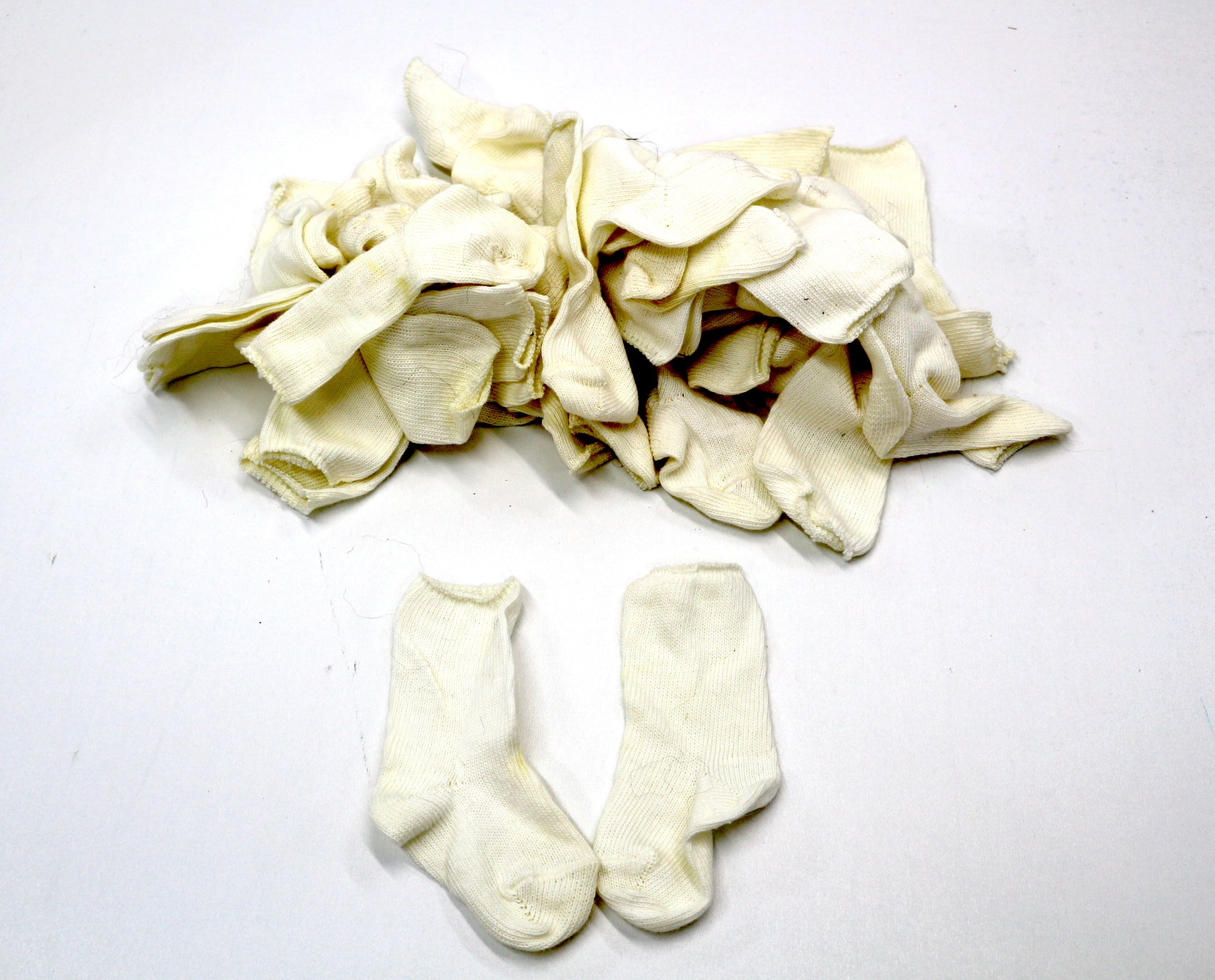 A fun bundle of little socks, available in brown, white, or gray. Each pair measures small and seems to be intended more for craft use than everyday wear. Perfect for upcycling and creative projects!