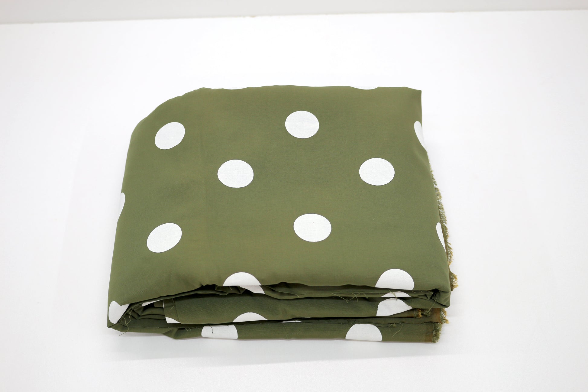 Olive Green Polka Dot Rayon Blend Fabric – 60" x 6 Yards | Soft & Playful