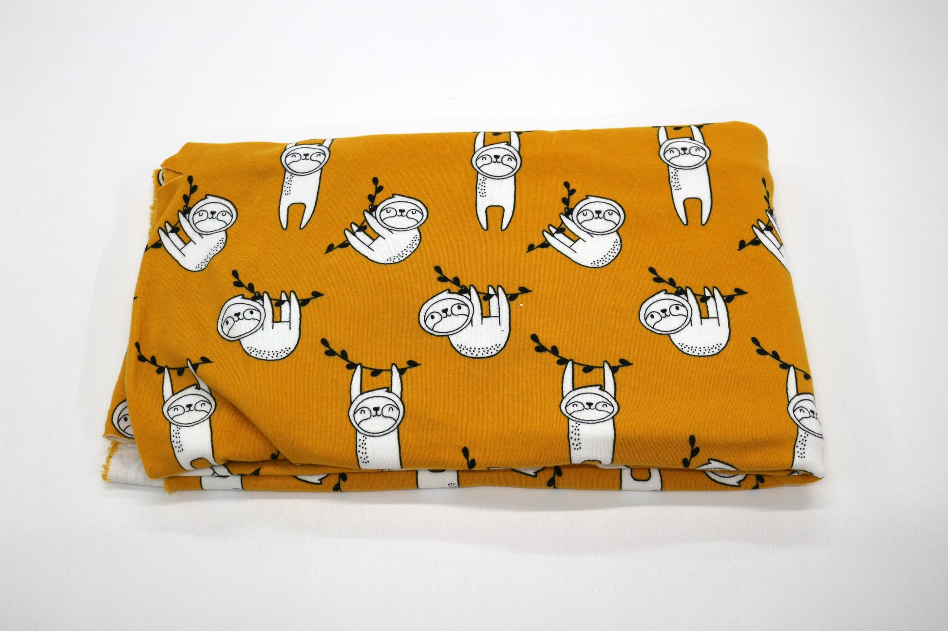 Sloth Print Knit Fabric Remnant – Golden Yellow 🦥