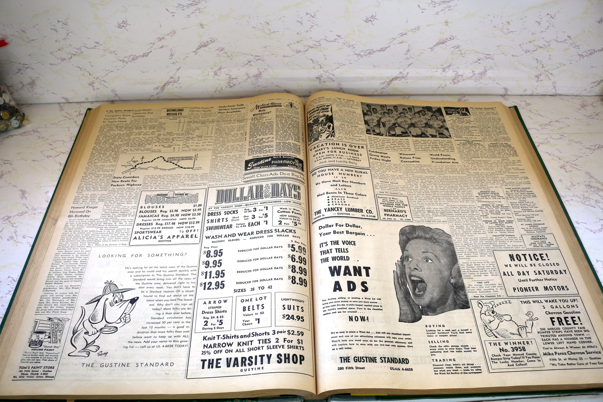 Take a journey through history with a unique collection of authentic pages from the Gustine Standard, spanning 5 different years. Perfect for history buffs, scrapbookers, and junk journal enthusiasts, this set includes one page from each available year, offering a snapshot of life, headlines, and advertisements from different eras.