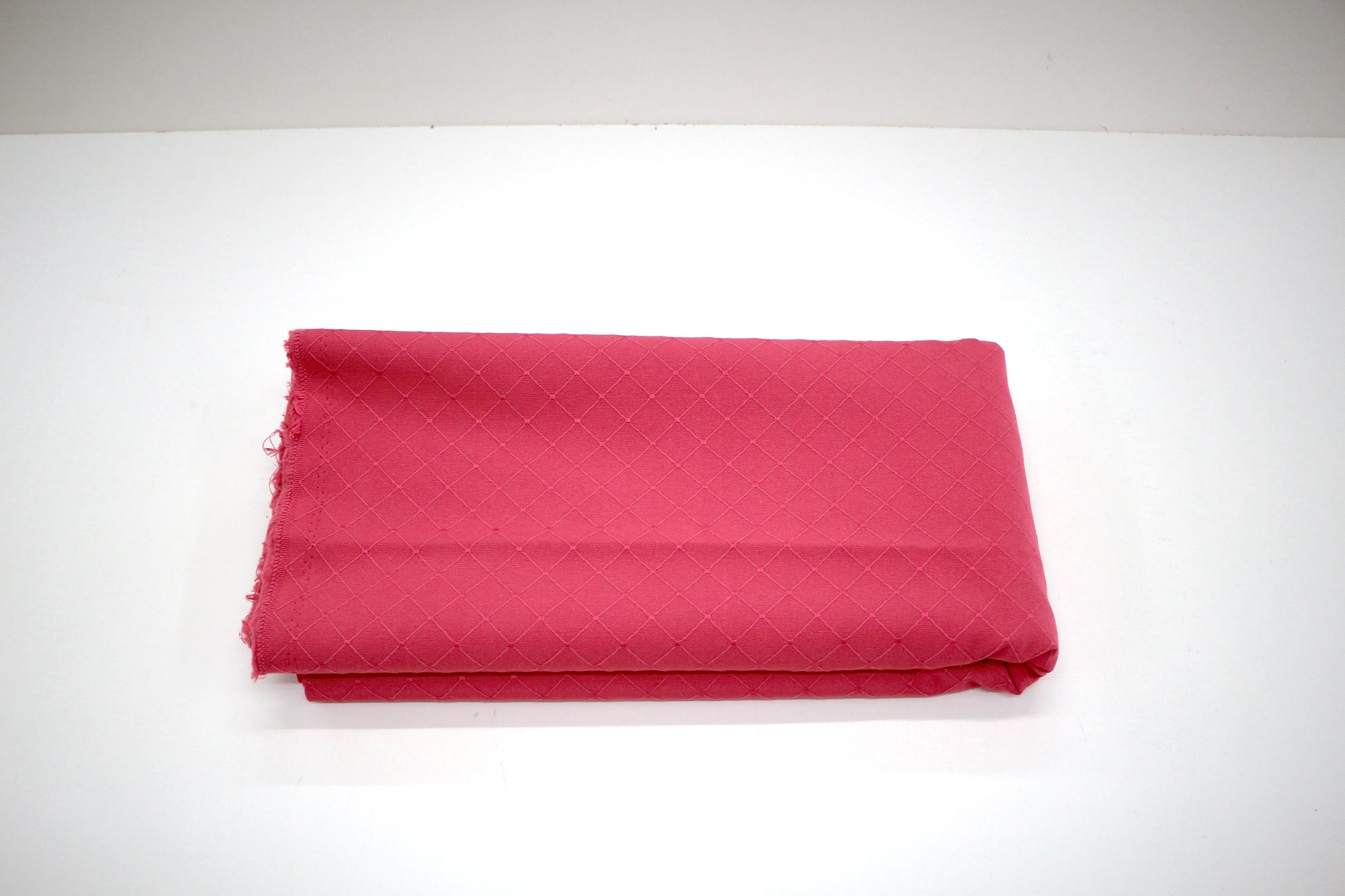 A stunning deep pink woven with a subtle diamond texture — bold, structured, and full of personality! This heavy cotton blend holds its shape beautifully, making it perfect for both fashion and décor projects that call for color and strength.