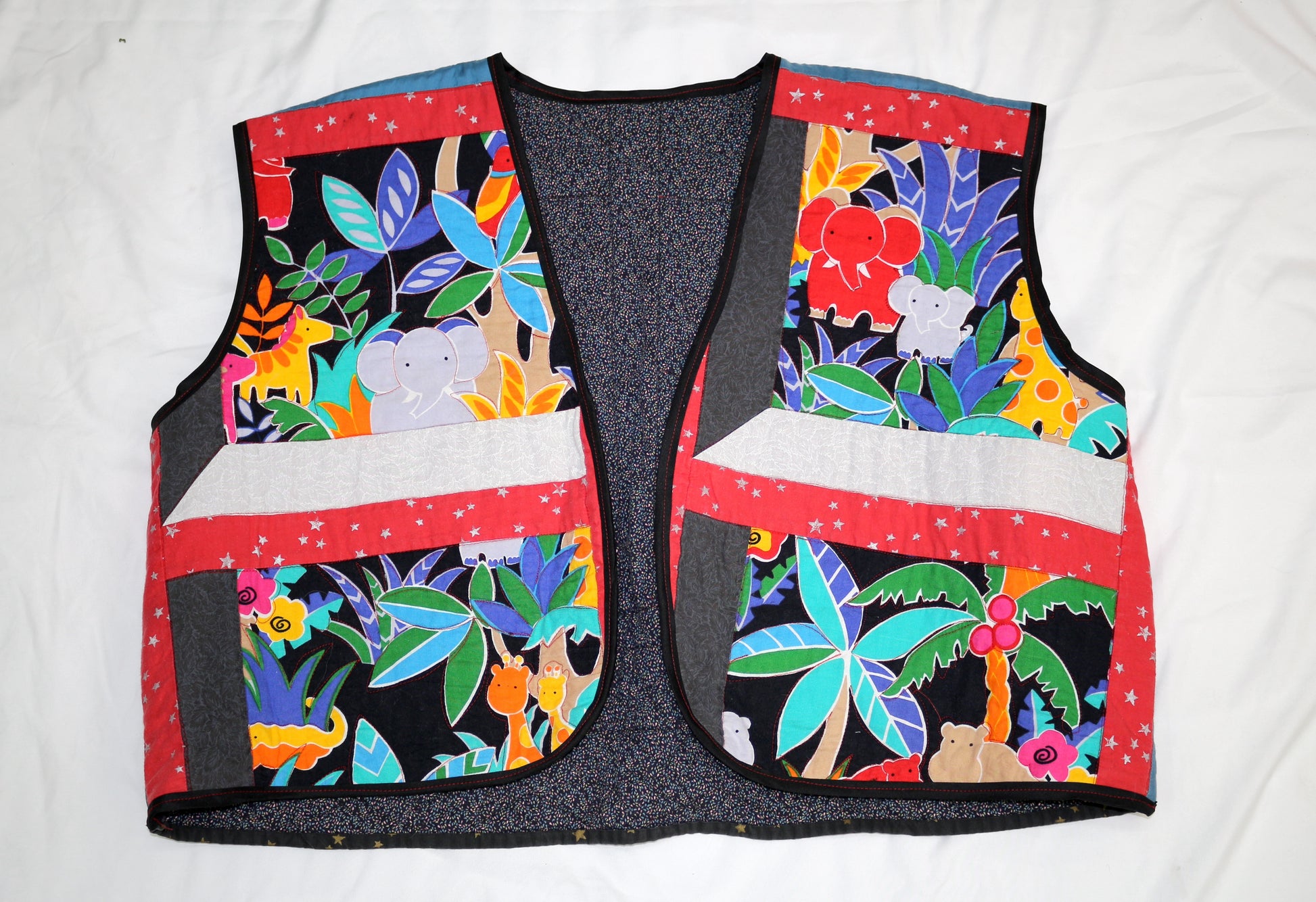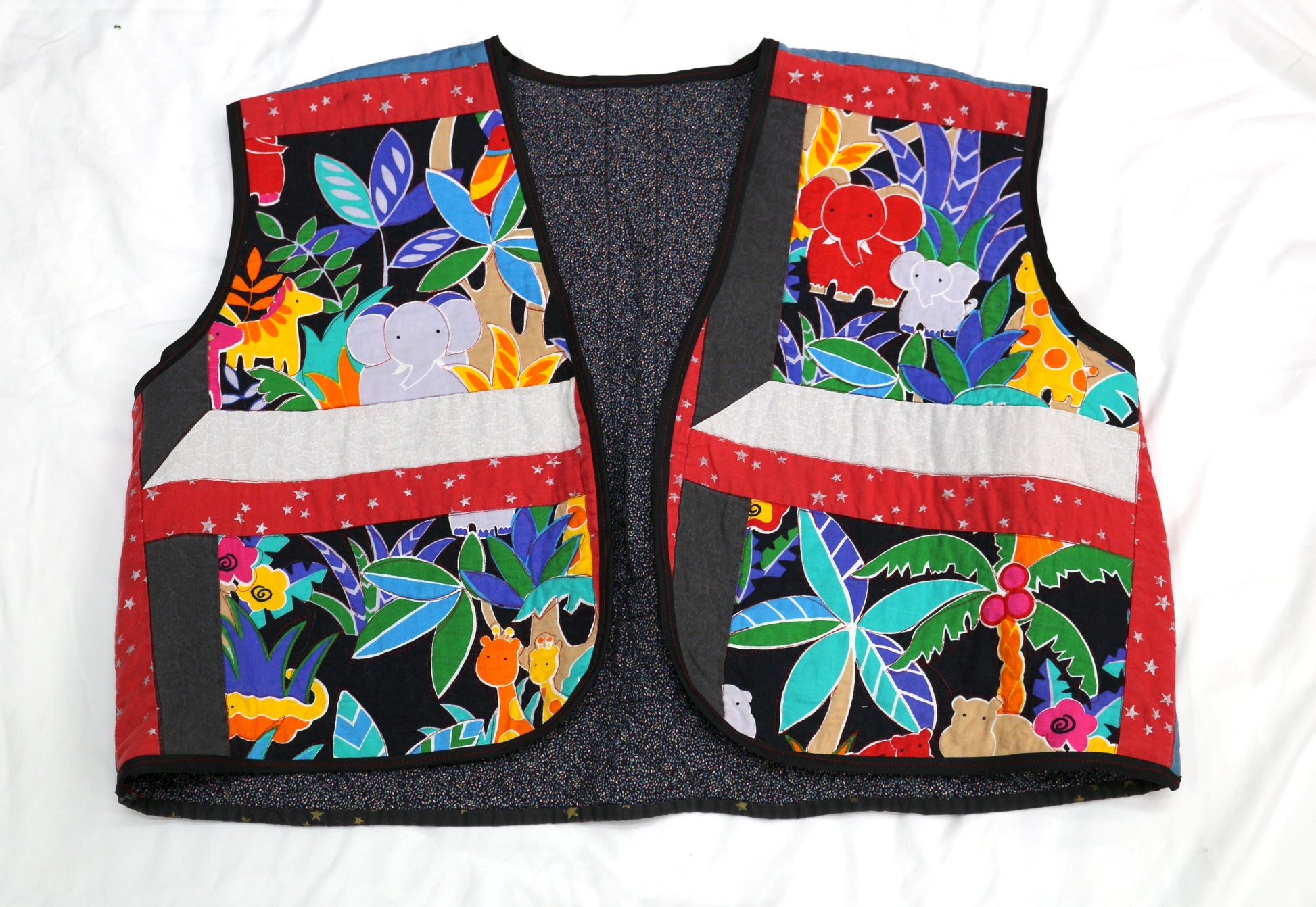 Upcycled Baby Blanket Vest | Handmade Quilted Vest | Playful Animal Print | One of a Kind | Fits Up to Women’s Size 22