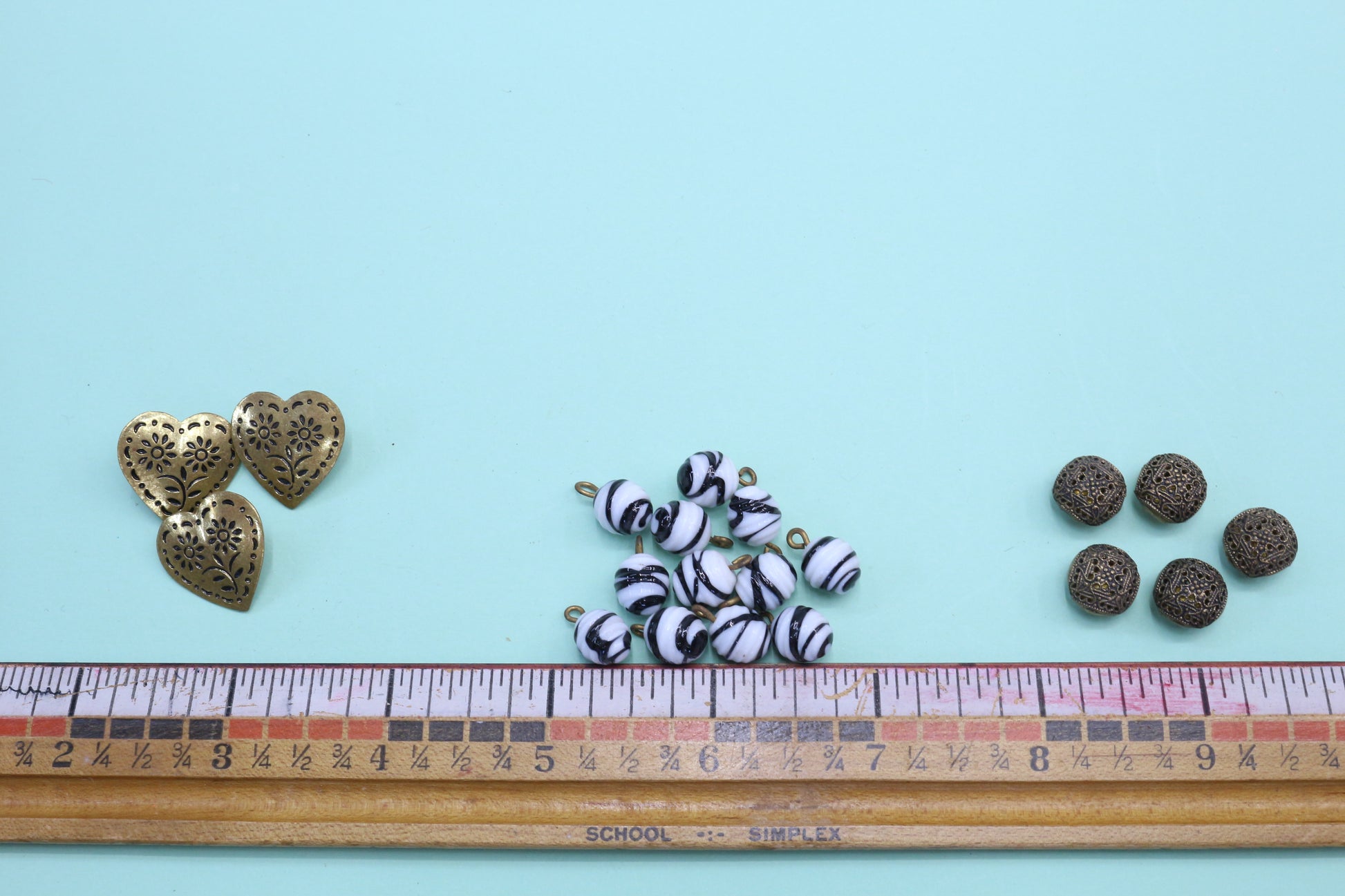 Vintage Buttons Metal Hearts or Glass Black & White Balls or Detailed Metal Balls