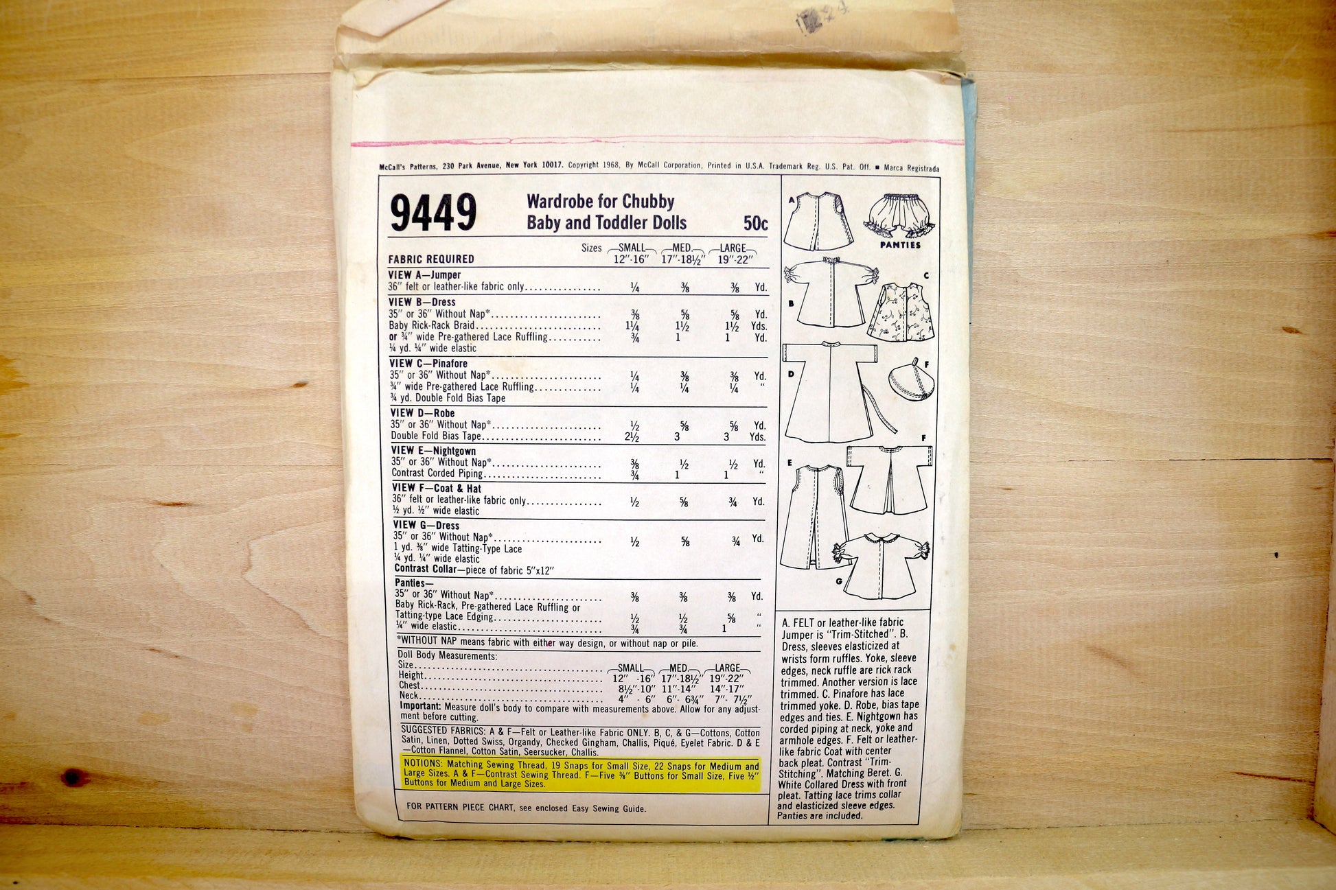 🪡 Vintage Doll Clothes Sewing Pattern McCalls 9449 Wardrobe for Chubby Baby & Toddler Clothes 12" - 22"