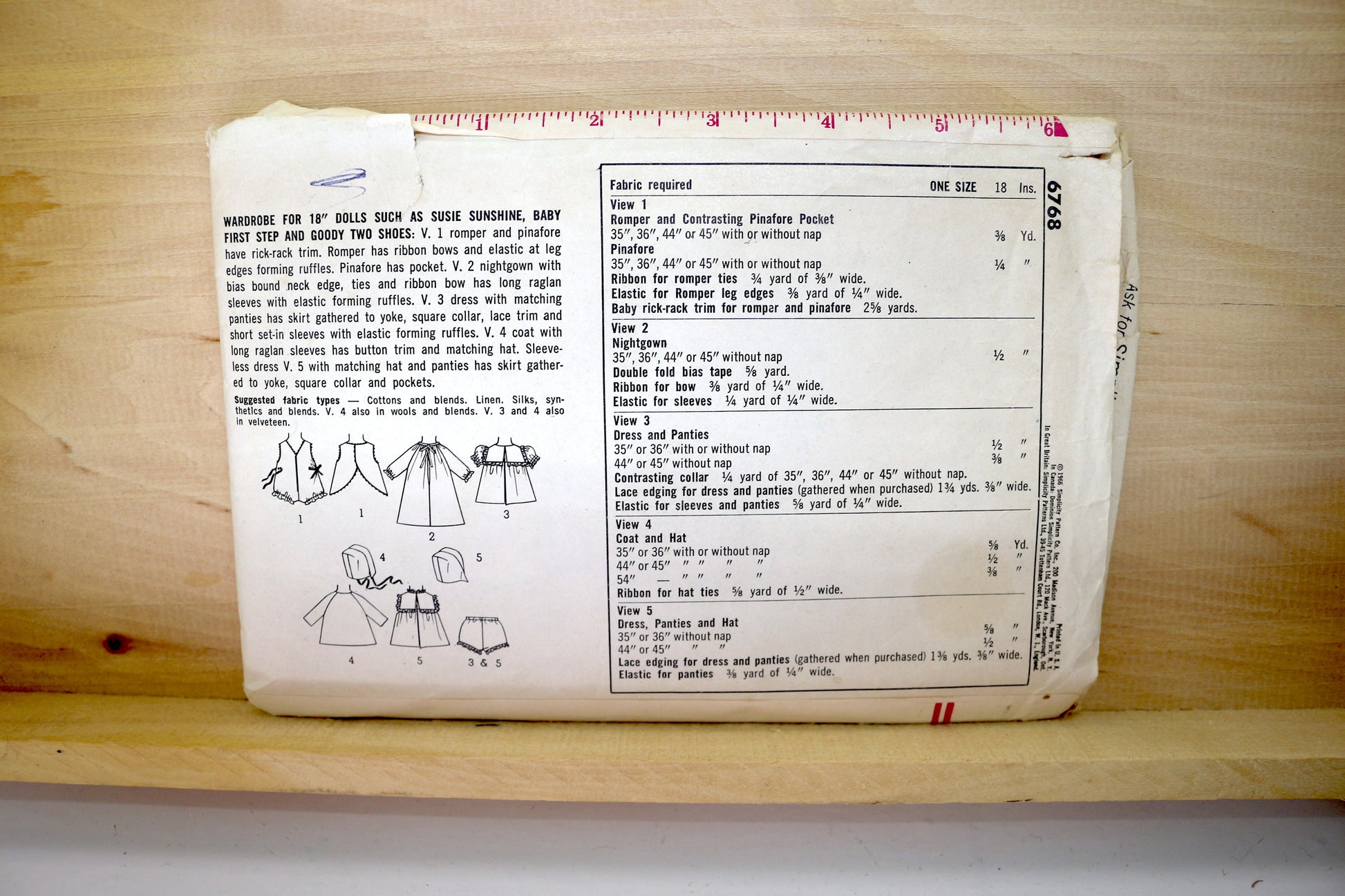 🪡 Vintage Doll Clothes Sewing Pattern Simplicity 6768 18"