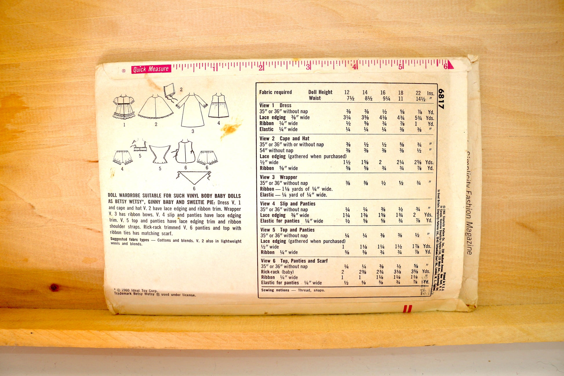 🪡 Vintage Doll Clothes Sewing Pattern Simplicity 6817 Size 16"