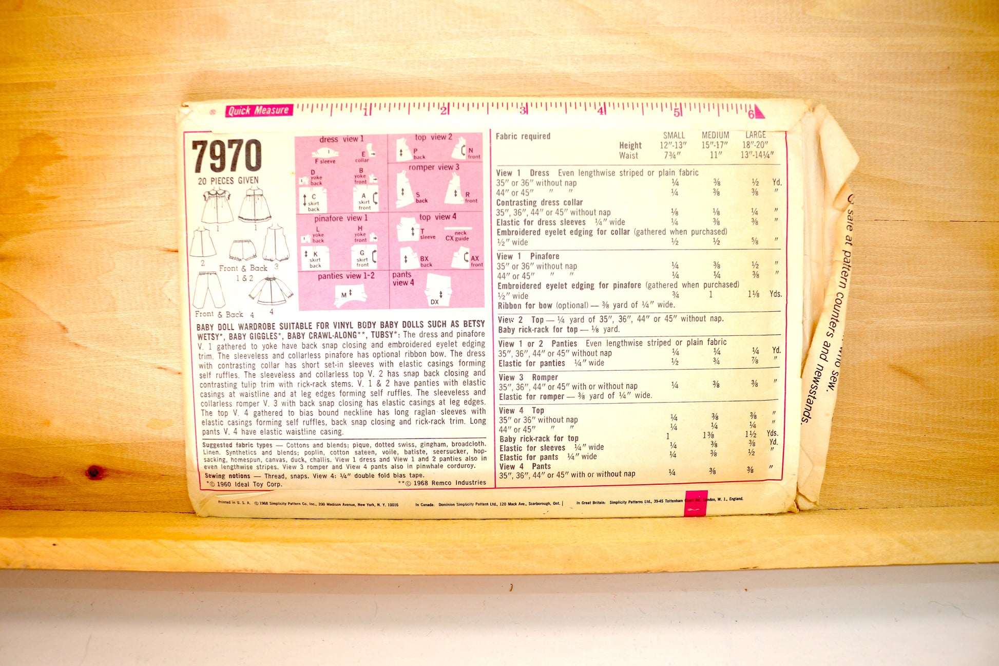 🪡 Vintage Doll Clothes Sewing Pattern Simplicity 7970 size 18"-20"