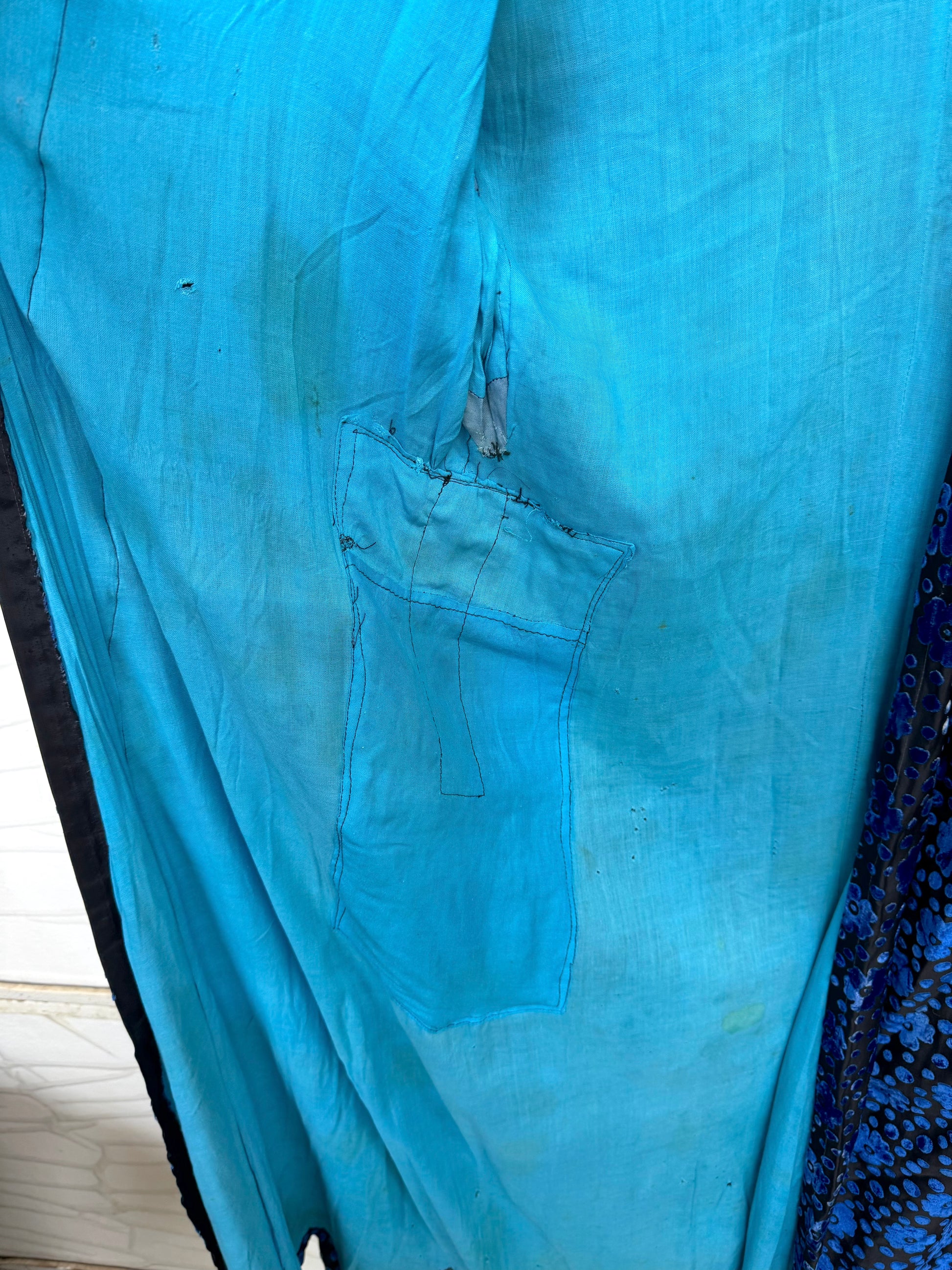 There is some visible wear on the inside, including mended areas, all clearly shown in the photos. The repairs add to its story and make it a perfect piece for anyone who appreciates slow fashion, visible mending, or garments with history and heart.