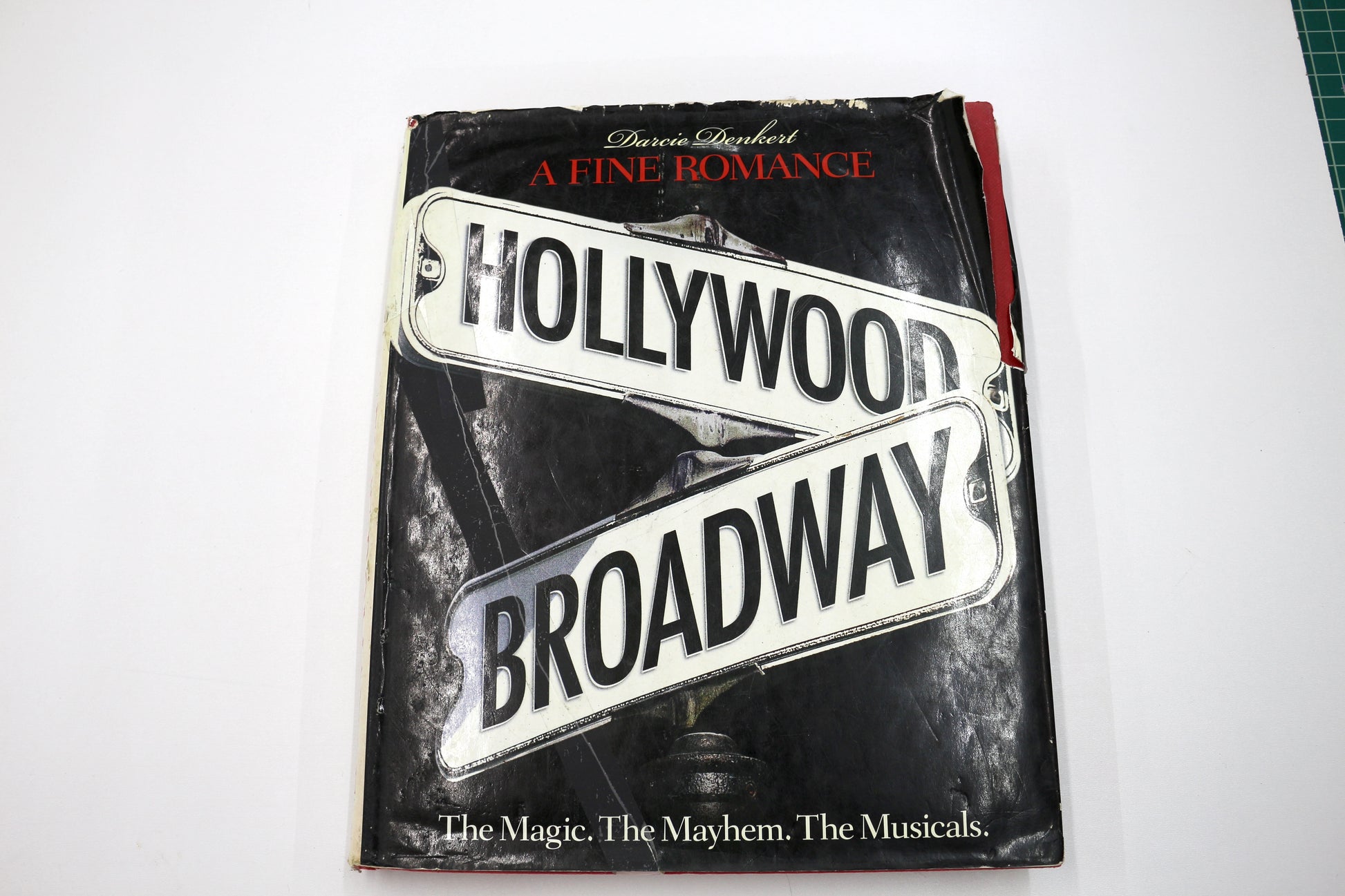 1️⃣ A Fine Romance: Hollywood / Broadway – A tribute to the golden age of musicals, filled with photos, stories, and the sparkle of stage and screen. (Dust jacket shows wear, but full of life inside!)