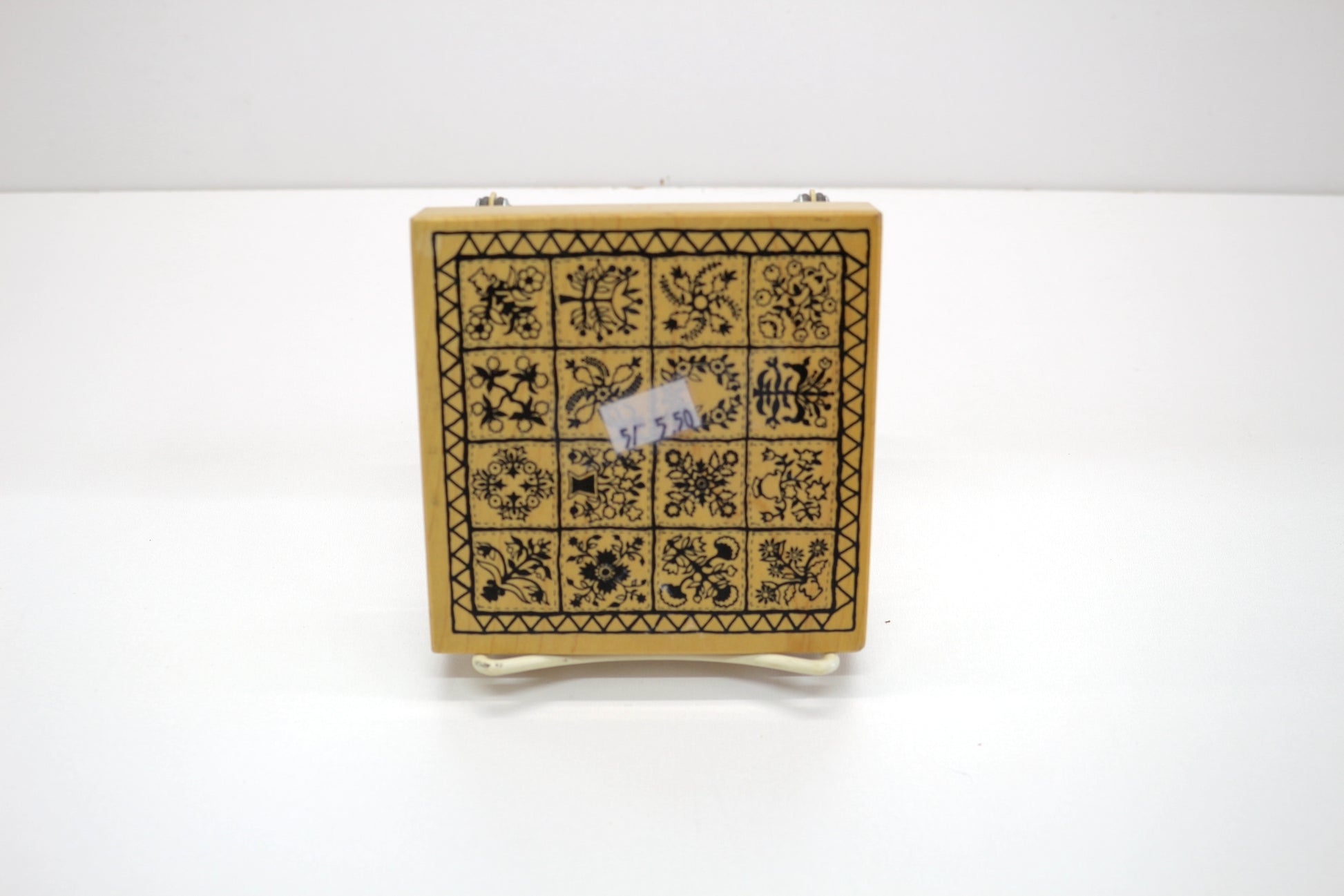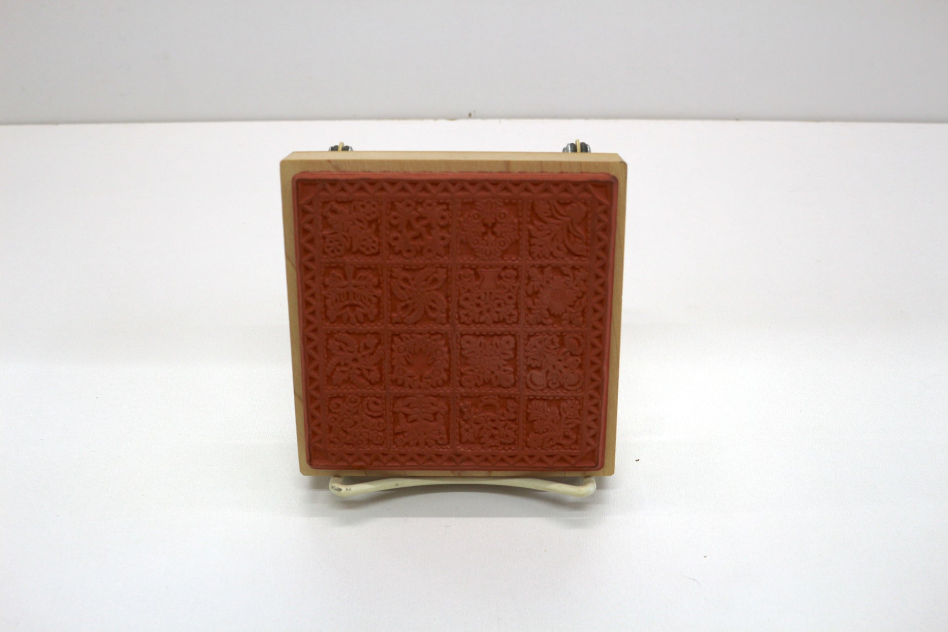 Bring a cozy, handmade touch to your crafting with this vintage quilt-block style rubber stamp, featuring 16 tiny patchwork-inspired motifs framed inside a decorative border. Perfect for anyone who loves quilting, folk art, or adding a little stitched-look charm to paper projects.