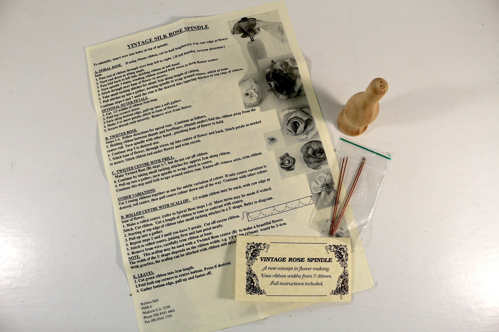 Vintage Silk Rose Spindle – Ribbon Flower Making Tool with Instructions