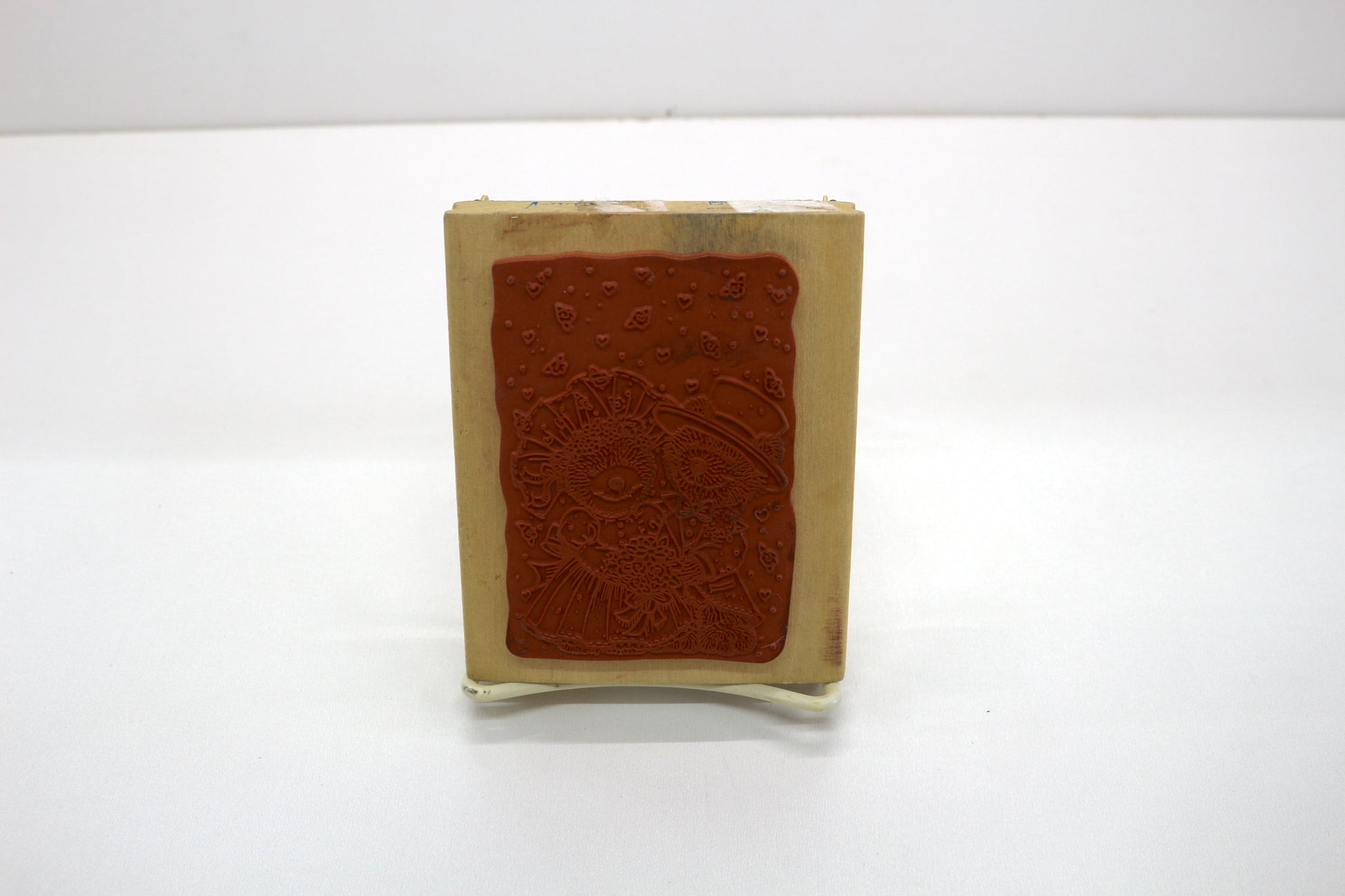 Mounted on sturdy wood and rescued from the craft stream, this gently used stamp still has plenty of creative life ahead. Buying secondhand keeps supplies affordable and helps keep usable materials out of the landfill — a total win for makers and the planet! 🌎💛