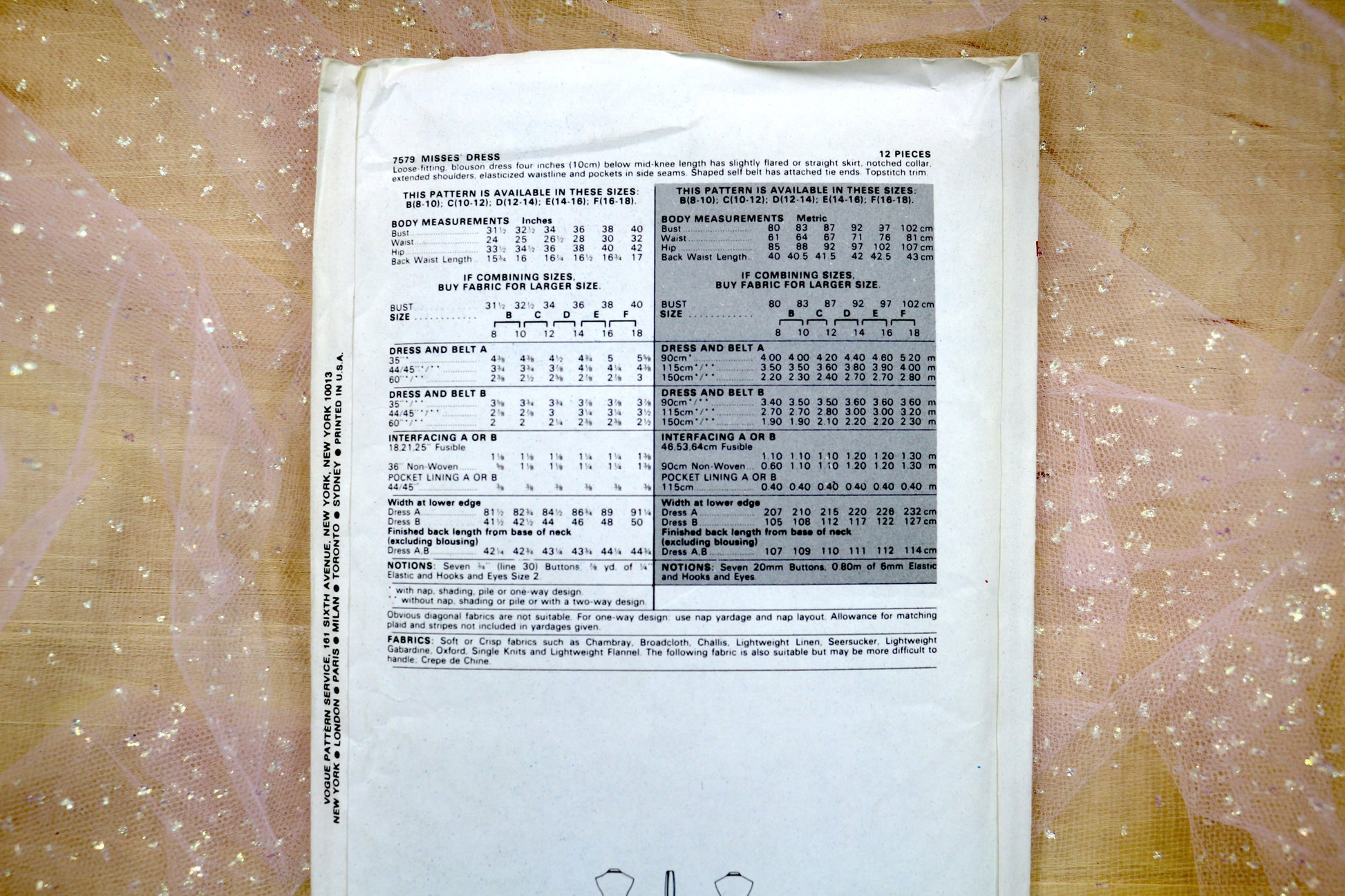 Vogue 7579 Misses' Dress Sewing Pattern 12-14
