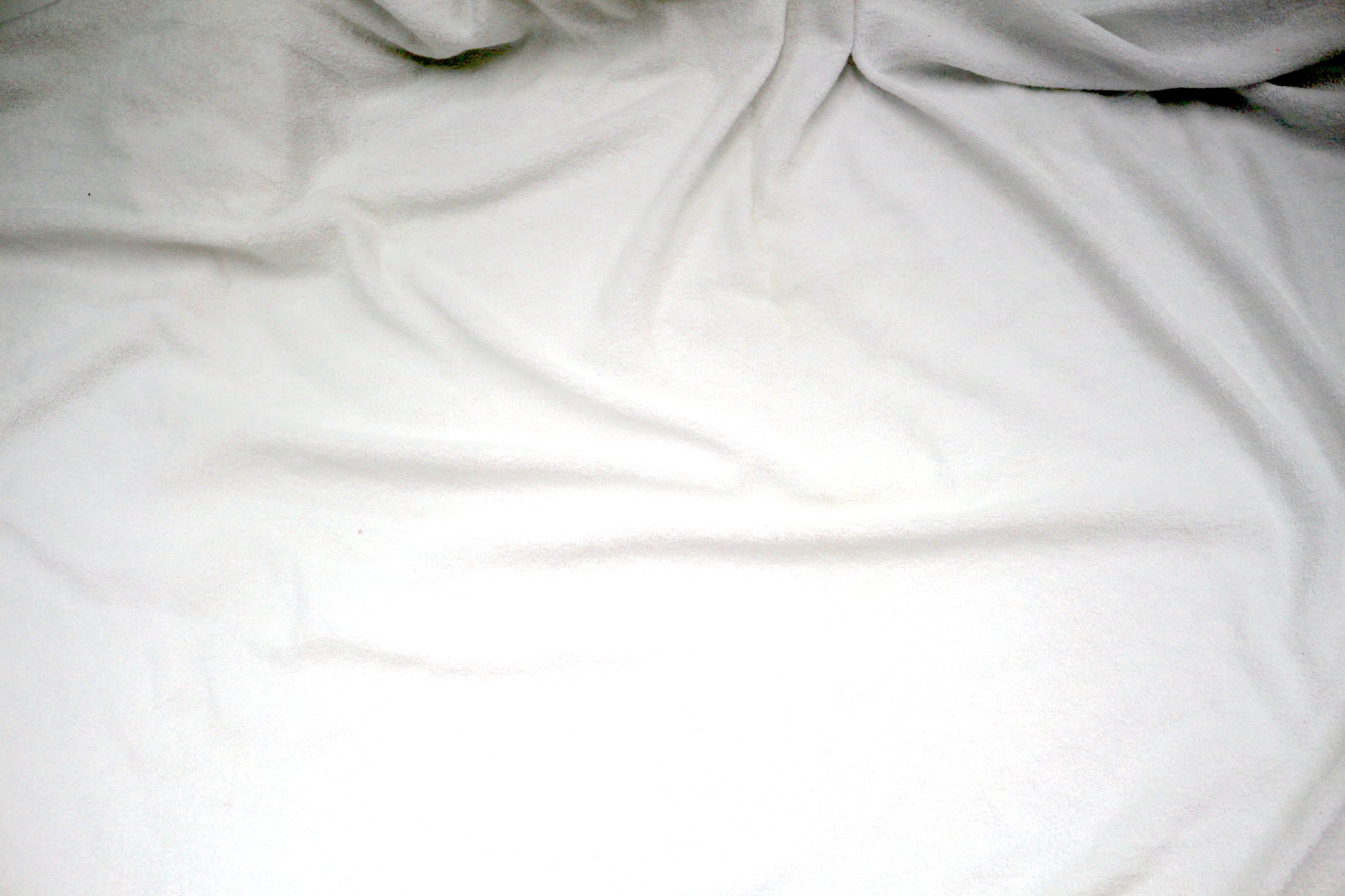 This large cut of white fabric features terry cloth texture on one side, making it perfect for projects that need softness and absorbency. Great for towels, robes, baby items, or craft projects. Fabric has been discounted.